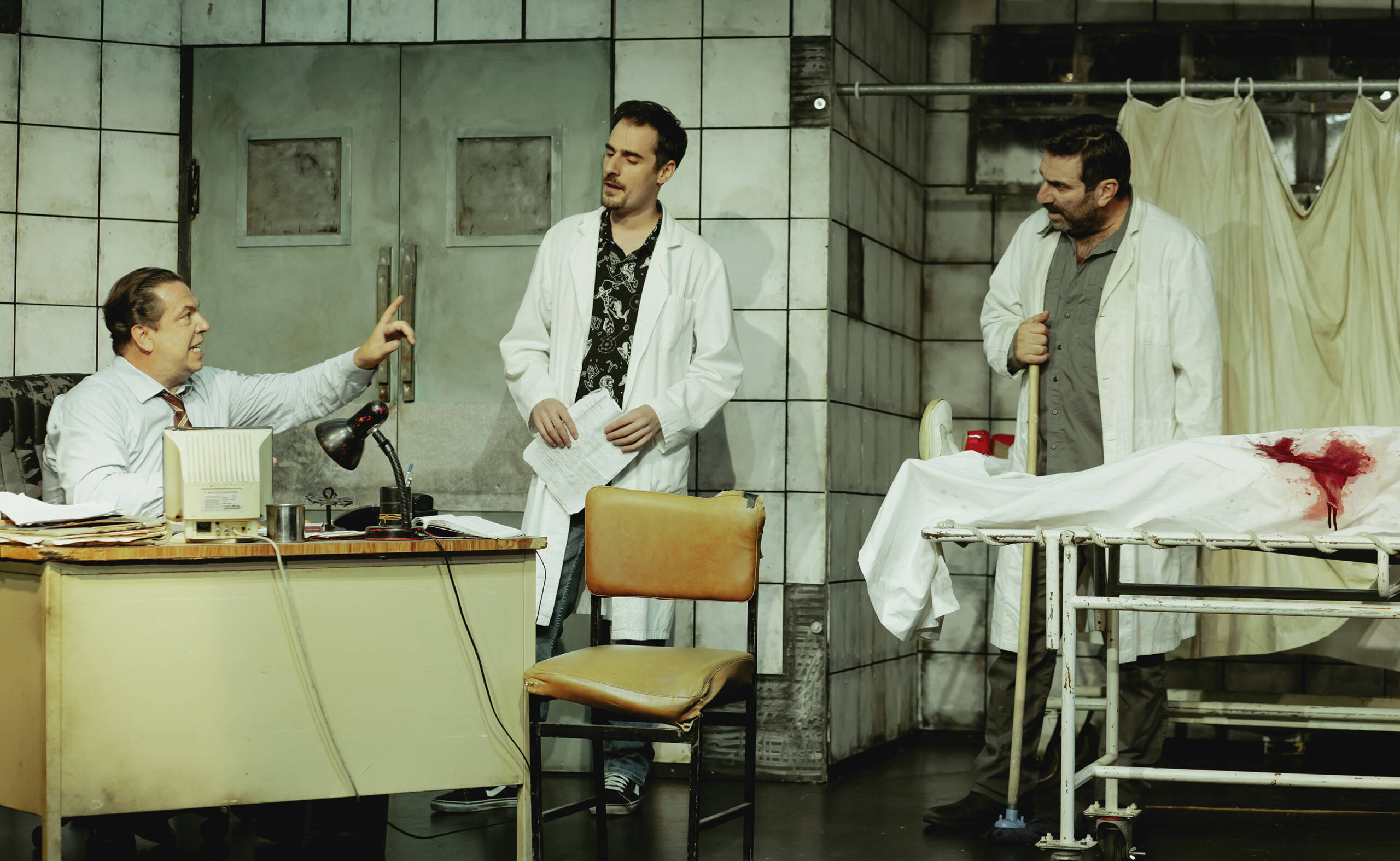 Τρεις άντρες, υπάλληλοι ενός νοσοκομείου, εργάζονται καθημερινά στην υπηρεσία τους στην υπόγεια πτέρυγα. Από τους πάνω ορόφους δέχονται και στη συνέχεια ταξινομούν, φροντίζουν και φυλάνε προσωρινά ανθρώπους που δεν κατάφεραν να επιζήσουν. Ακολουθούν μια ρουτίνα με τυπικές διαδικασίες. Απόψε όμως «έρχεται» μια γυναίκα να ταράξει τη νεκρή τους πραγματικότητα. Τα μυστικά, οι αποκαλύψεις και οι συγκρούσεις θα φέρουν στο φως τις αδυναμίες και τα ταπεινά τους ένστικτα. Ακολουθεί το έγκλημα, η εκδίκηση, η ενοχή και όταν φτάσει το πρωί δε θα είναι τίποτα ίδιο.